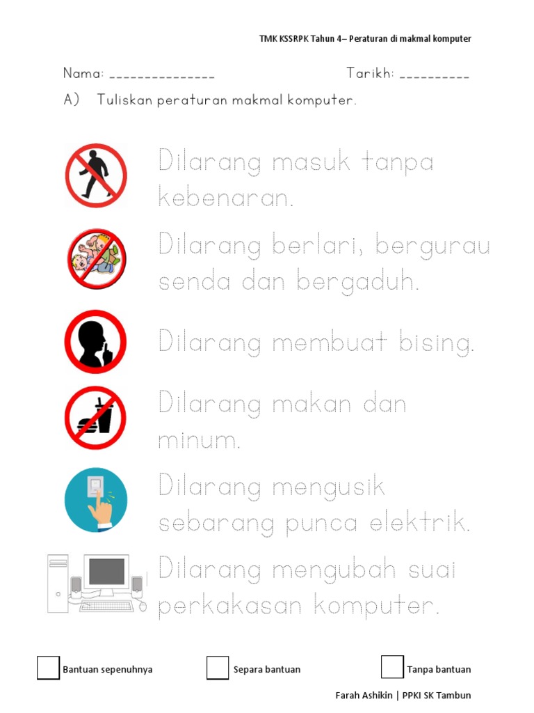 Dilarang membawa beg makanan atau minuman ke dalam makmal. Live worksheets Malay. Pengguna tidak dibenarkan masuk ke dalam makmal komputer tanpa izin atau semasa tiada penyelaras.